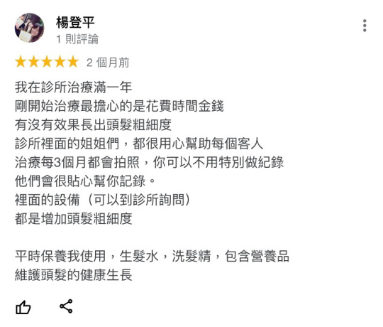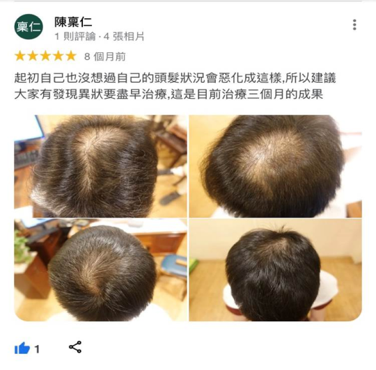 適合頭頂仍有許多小毛者,所以自然生髮越早治療,恢復效果越好。